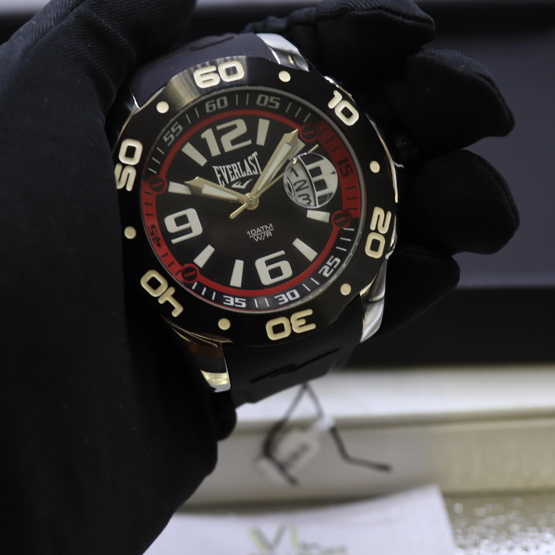 "Desbloqueie o seu potencial com o Relógio Everlast! Com pulseira em borracha flexível e mostrador preto, branco e vermelho de 50 mm, essa peça é um verdadeiro ícone esportivo. Com calendário prático e resistência à água, você pode enfrentar qualquer desafio. Use o tempo ao seu favor e vá além com o Everlast!"