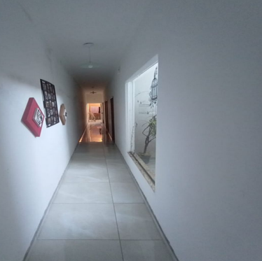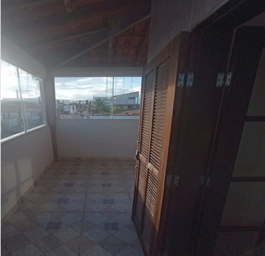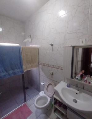 Sobre o terreno encontra-se edificada construção residencial não averbada, com área construída aproximada de 129,00m², composta por 02 quartos na parte inferior, 01 suíte, 01 quarto superior, sala, cozinha, banheiro, garagem coberta, lavanderia, terraço, sacada frontal, além de área inferior destinada a uso comercial, conforme laudo de avaliação.